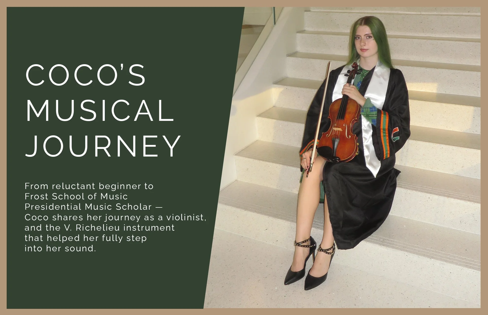 The stakes of having the right instrument became vividly real when Coco auditioned for the Frost School of Music at the University of Miami — one of the most competitive music programs in the country.