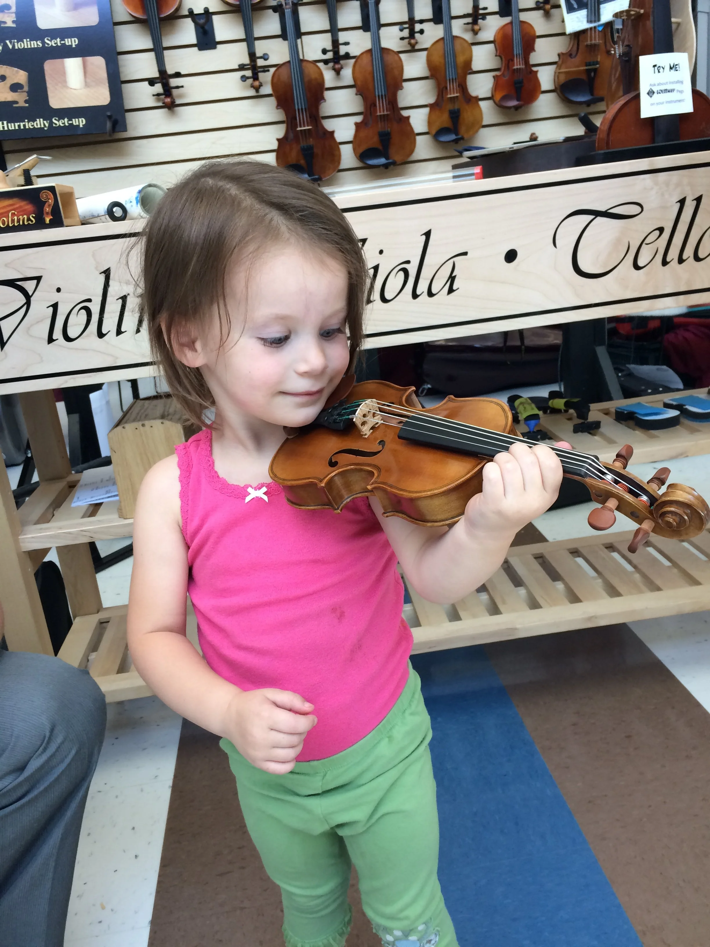 Zoey’s first time holding a violin